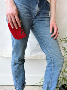 A small leather pouch with a zip.  This perfect little leather wallet has one main compartment and one card slot which can hold several cards.  Fits perfectly in a back pocket. Made from buttery, organically tanned leather that will darken and get better with age.  This leather has been produced using organic materials as opposed to environmentally harmful chemicals.  It has a nostalgic, earthy smell, and a tough durable feel.  It will develop a patina over time, like beautifully worn in saddle.